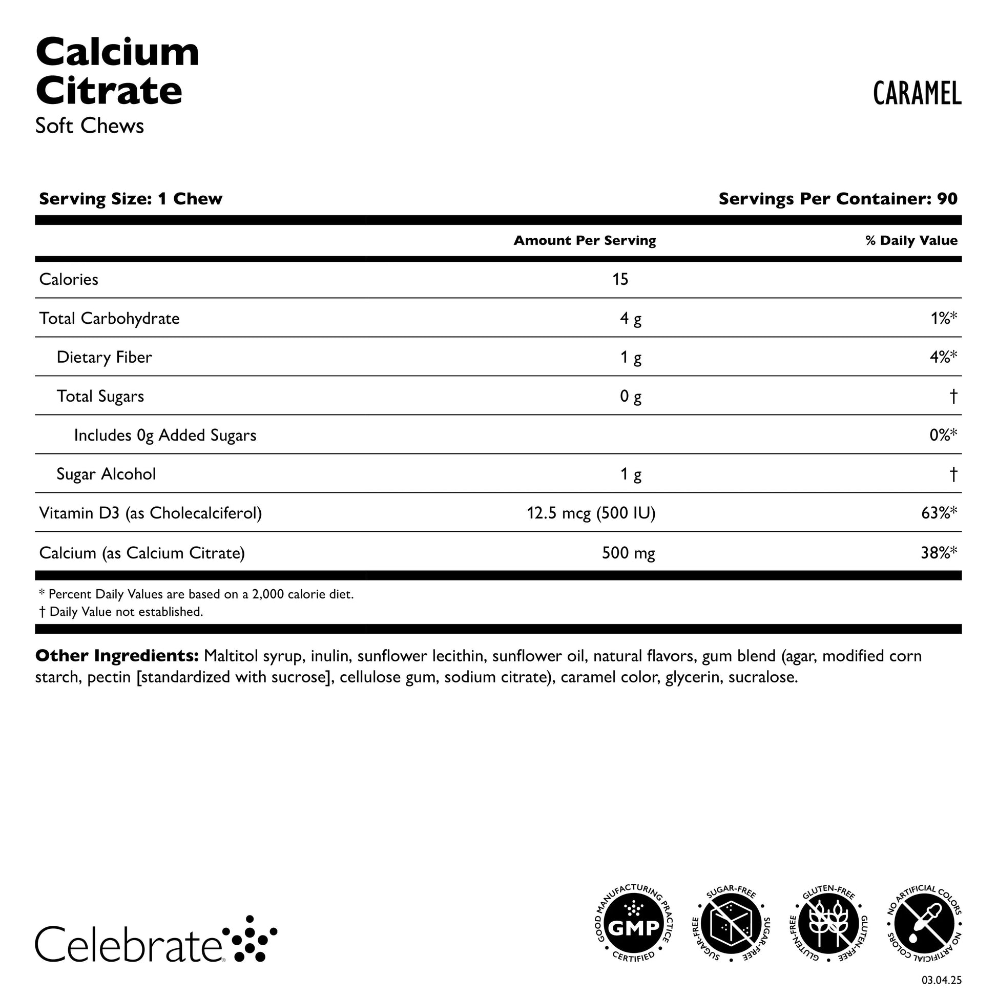 • 500 mg de citrato de calcio elemental + 500 UI de vitamina D3 por masticable.